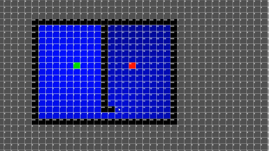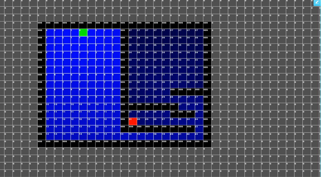 This program is a visual representation of a bushfire algorithm. You right-click to place a goal, left-click to place an endpoint and middle-click to place a wall.