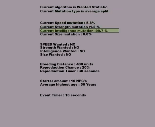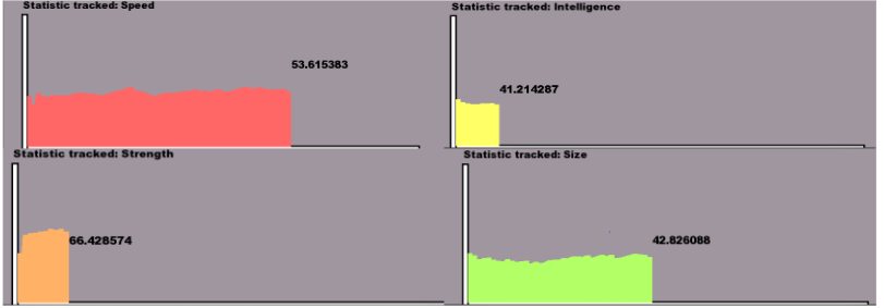 To add a more dynamic feel, I added the ability to trigger a random event. These events would affect the NPC based on its aptitude for a certain statistic. E.g high speed with a speed event will result in a higher chance of death.